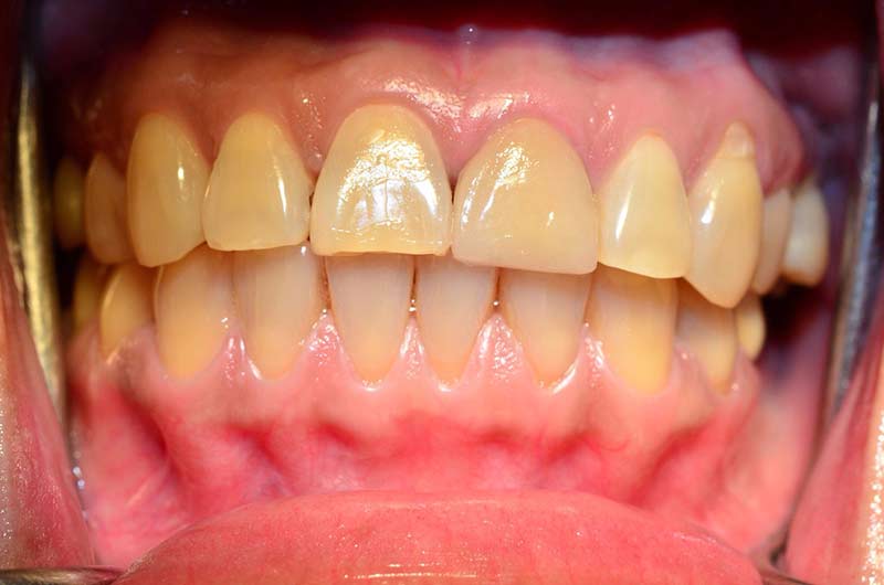 - 經過根管治療的牙齒也可能慢慢變成深褐色。