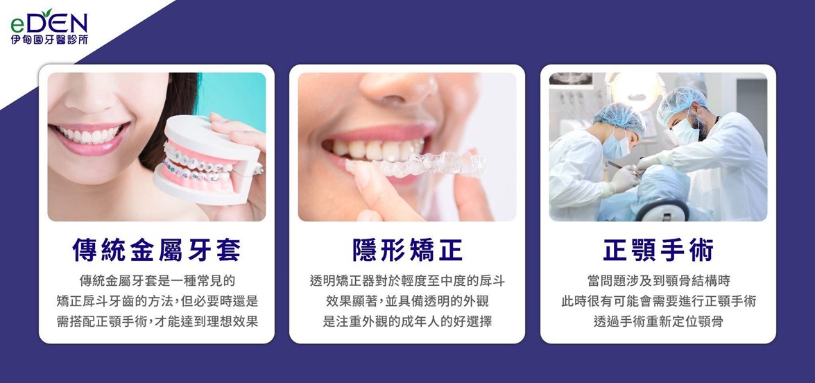 矯正戽斗牙齒的方法包括傳統金屬牙套、隱形矯正、正顎手術等。選擇哪種方法取決於戽斗程度、個人需求和牙醫的建議。傳統金屬牙套